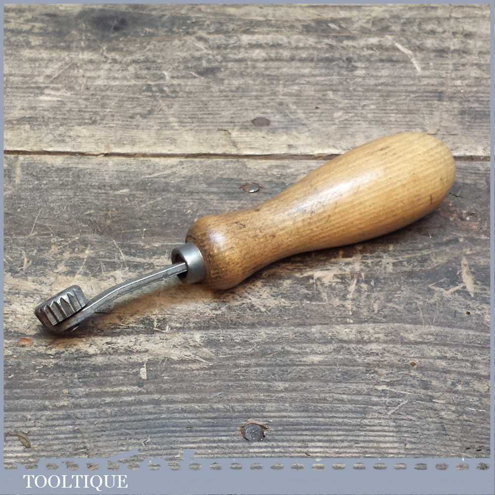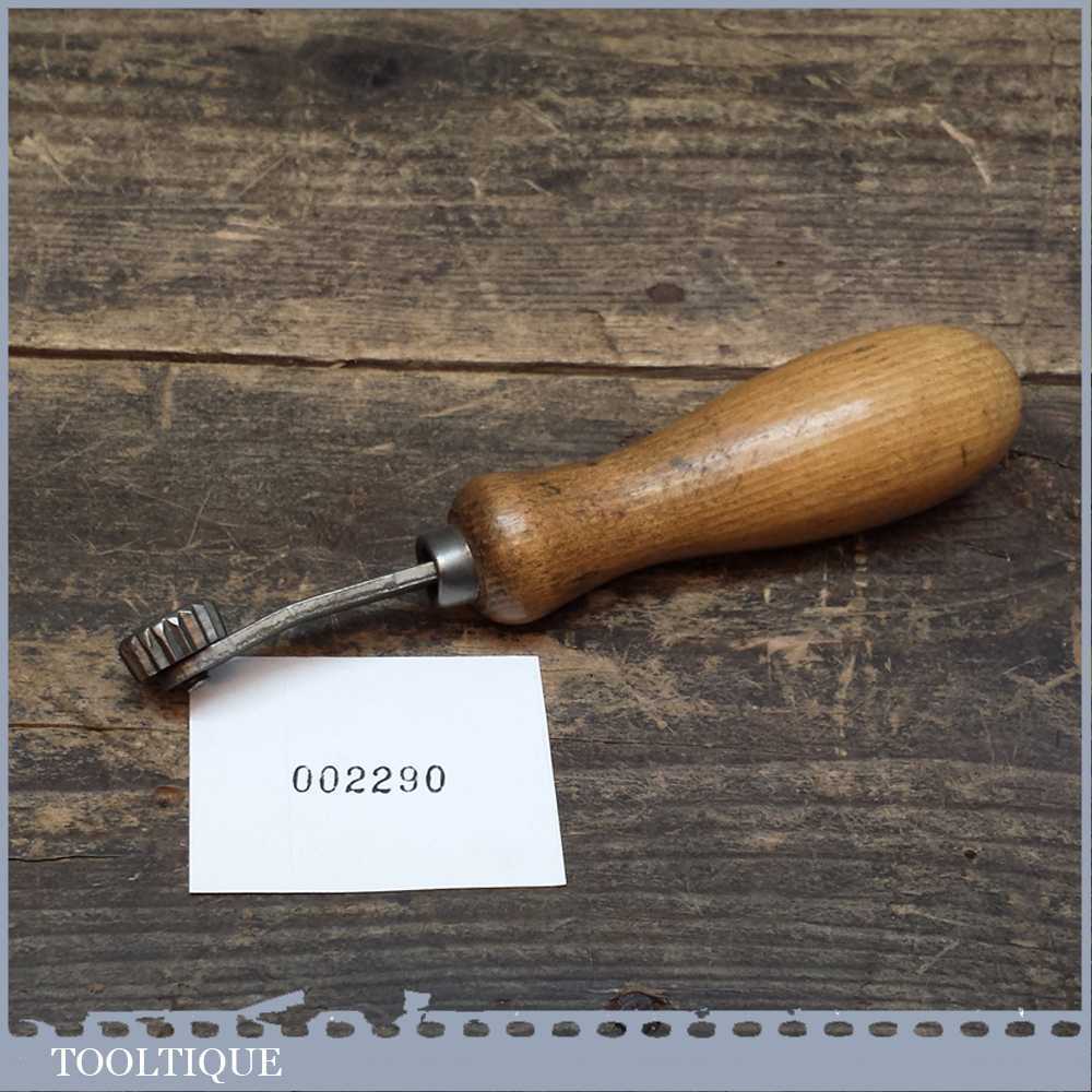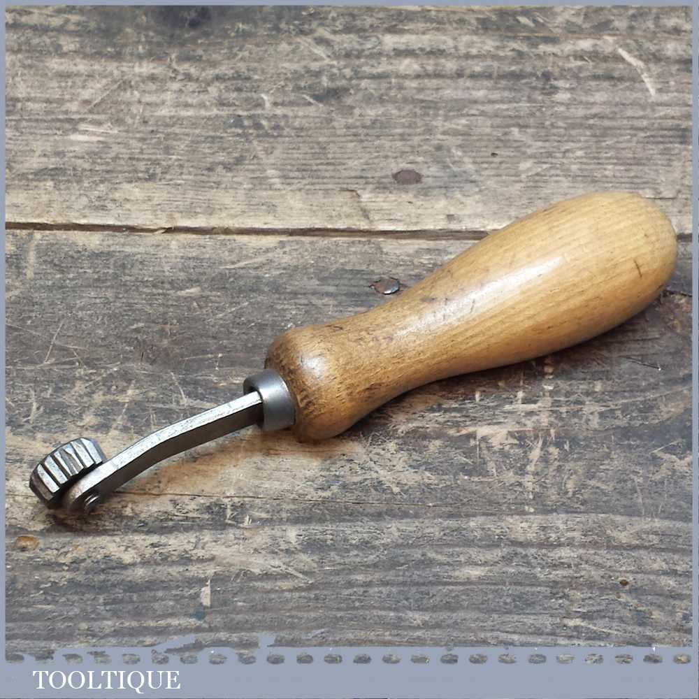 Vintage leatherworking No: 10 fudge wheel with beech wood handle and in good used condition.