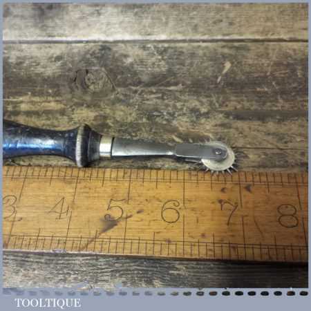 Nice vintage leatherworking pricking wheel 8 PPI with cast iron body and ebonised handle in good used condition.