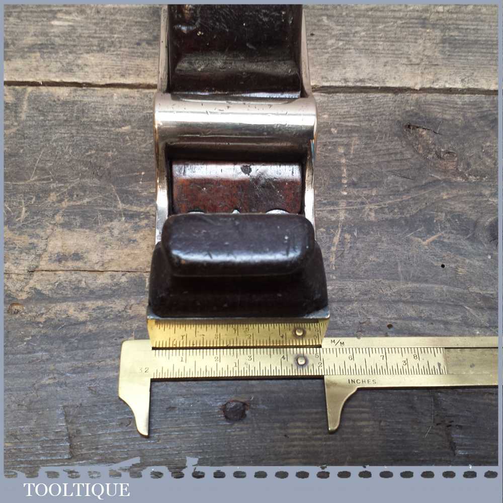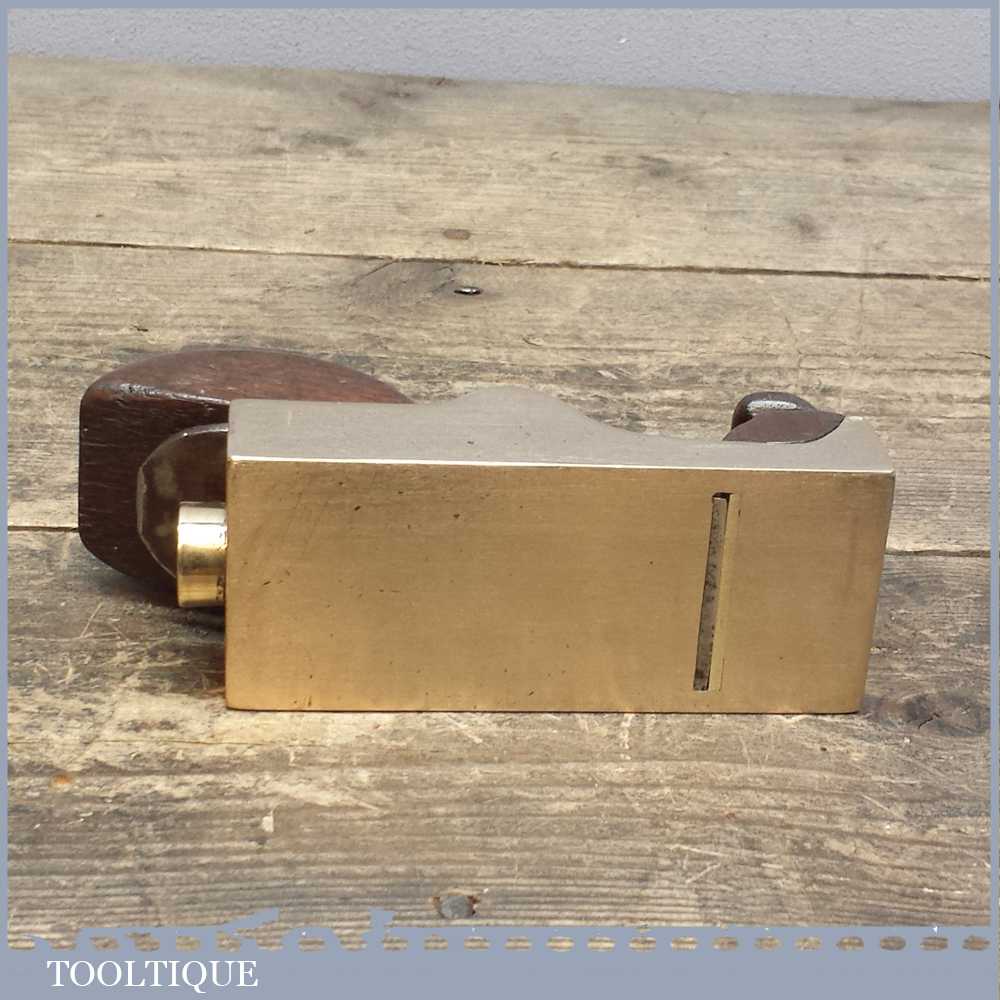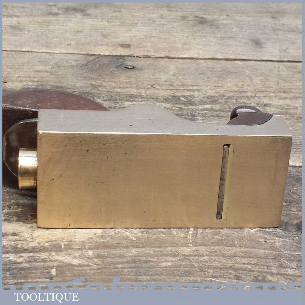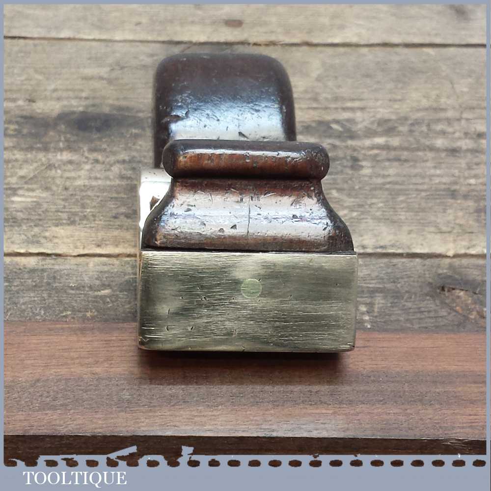 Vintage low angle Brass and rosewood infill chariot plane measuring 4 ¾” long. It’s in good overall condition (see images). The longer length is quite unusual but was a factor in achieving the lower angle iron and was why it was probably made by a pattern maker.