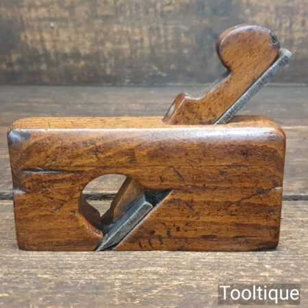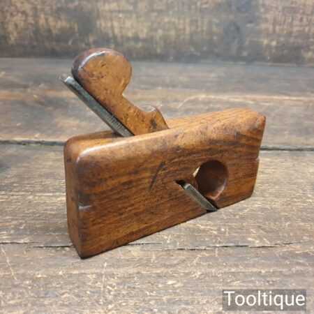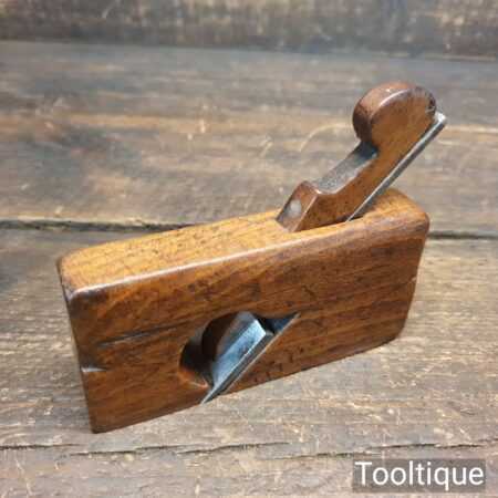 Vintage Luthiers instrument maker’s 4 ¼” miniature beechwood skew iron rabbet plane, in good used condition.