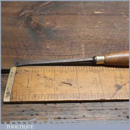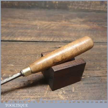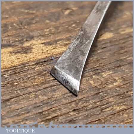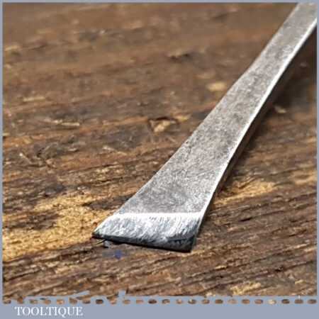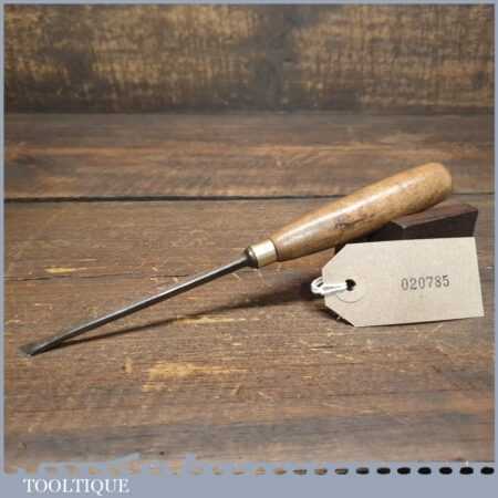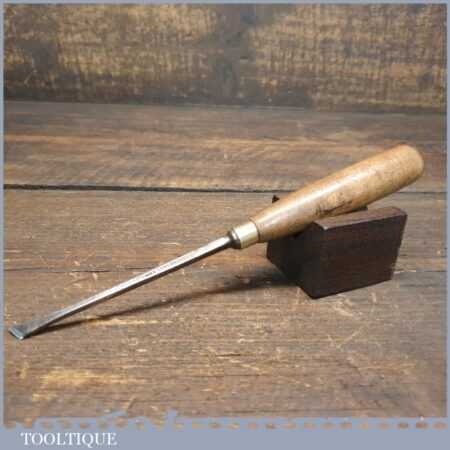 Vintage M & C of London 1/4” skewed fishtail chisel with beechwood handle in good used condition, fully refurbished sharpened and honed ready for use.