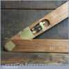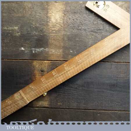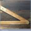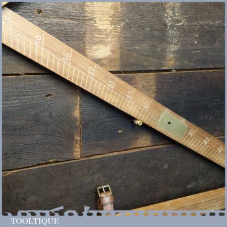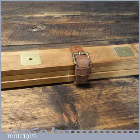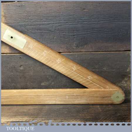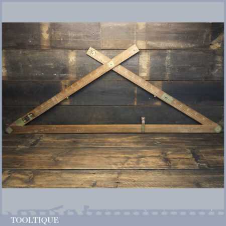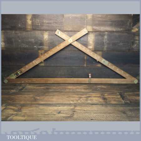 Vintage M.D.S. Ltd. No: B.24047 surveyor’s teak and brass folding triangle incorporating spirit level and small plumb bob in good used condition.