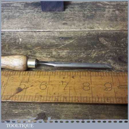 Vintage M. W. Vine carpenter’s 5/16” bevel edge chisel with beechwood handle in good used condition, fully refurbished sharpened and honed ready for use. Note: Tang length is shorter, hence price.