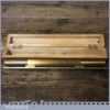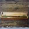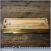 Vintage machinist’s engineering brass spirit level in nice beechwood box with brass hinges in good used condition. Note: the level has not been tested and may require resetting in putty if intended for use.