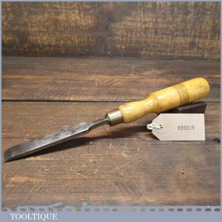 The chisel has been checked to ensure the tang is seated properly and the handle is solid and fit for use. All refurbished chisels are water cooled during the sharpening process to ensure the tempering is not affected.