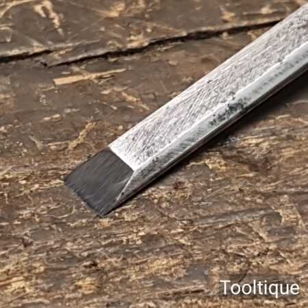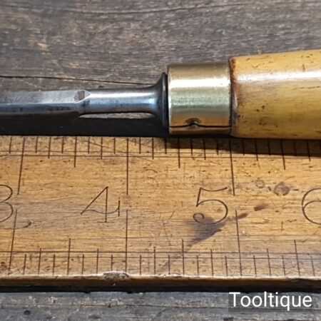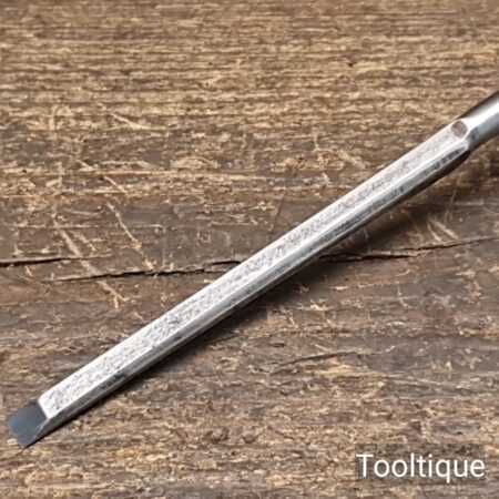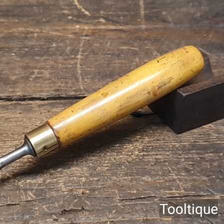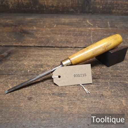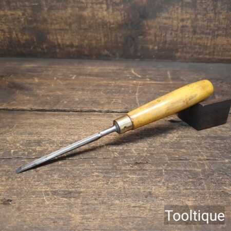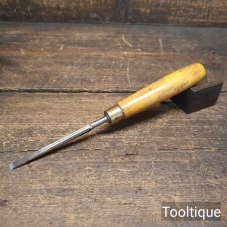 Vintage Marples ¼” bevelled edge chisel with a boxwood handle, refurbished ready for use and in good used condition. Note: Maker’s mark worn off handle.