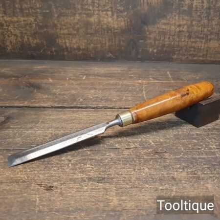 Vintage Marples ¾” bevelled edge chisel with a boxwood handle, fully refurbished ready for use and in good used condition. All refurbished chisels are water cooled during the sharpening & Flattening process to ensure the tempering is not affected.