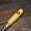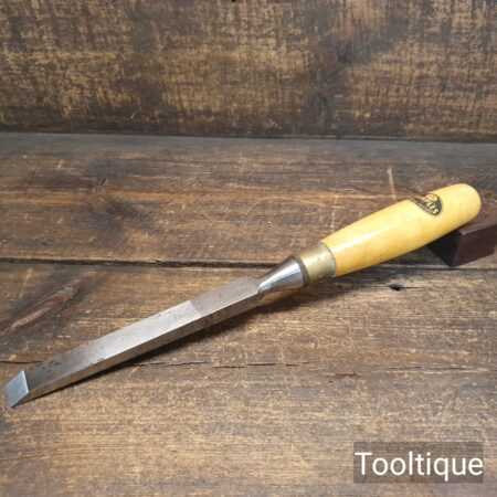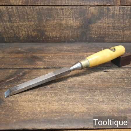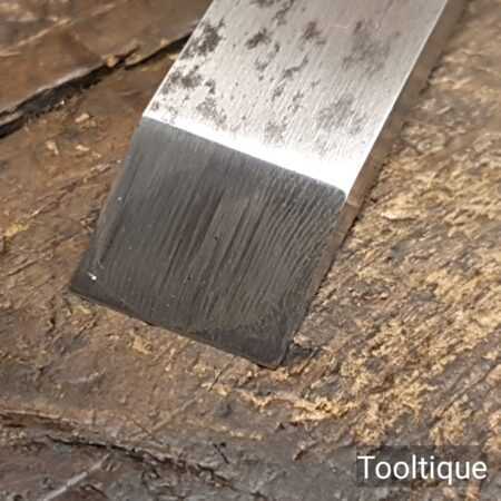 The chisel has been checked to ensure the tang is seated properly and the handle is solid and fit for use. All refurbished chisels are water cooled during the sharpening process to ensure the tempering is not affected. Note: Handle did have a crack where it was seated to the tang but this has been resin treated