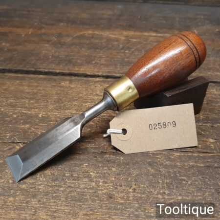 The chisel has been checked to ensure the tang is seated properly and the handle is solid and fit for use. All refurbished chisels are water cooled during the sharpening & flattening process to ensure the tempering is not affected