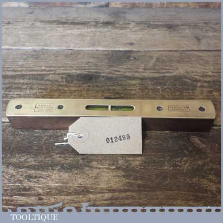 Vintage Marples 8” mahogany and brass spirit level with original glass bubble tube, in good used condition. Note: the level hasn’t been tested and may require resetting in putty if intended for use.