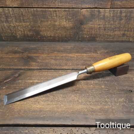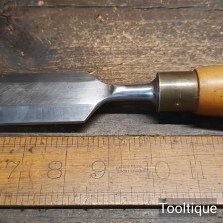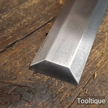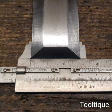 The chisel has been checked to ensure the tang is seated properly and the handle is solid and fit for use. All refurbished chisels are water cooled during the sharpening & flattening process to ensure the tempering is not affected