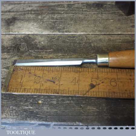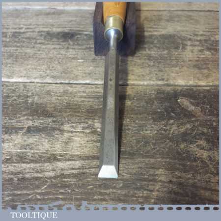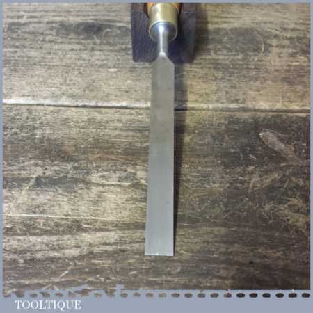 The chisel has been checked to ensure the tang is seated properly and the handle is solid and fit for use. All refurbished chisels are water cooled during the sharpening process to ensure the tempering is not affected. These old cast steel chisels are hand forged and far superior in quality because of the high carbon steel that was used which produces a keener edge, this was also generally used throughout the full length.