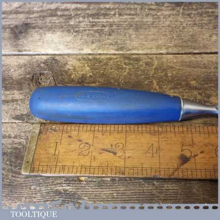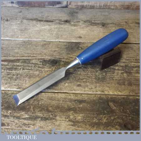 Vintage Marples carpenter’s 1” blue chip bevel edge chisel with plastic handle, in good used condition, fully refurbished, sharpened and honed ready for use.