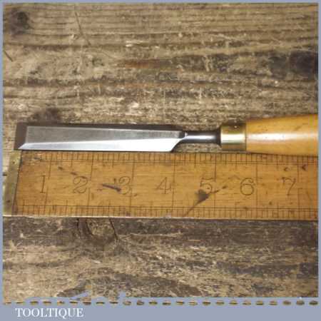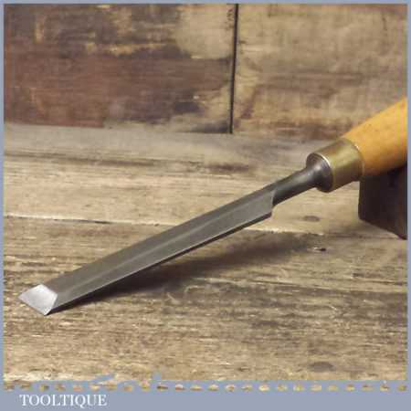 The chisel has been checked to ensure the tang is seated properly and the handle is solid and fit for use. All refurbished chisels are water cooled during the sharpening process to ensure the tempering is not affected. These old cast steel chisels are hand forged and far superior in quality because of the high carbon steel that was used which produces a keener edge, this was also generally used throughout the full length.