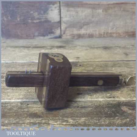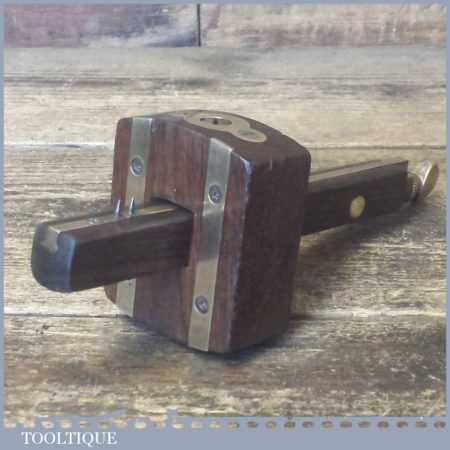 Vintage Marples carpenter’s rosewood and brass mortise gauge with smooth action and good pins, in good used condition.