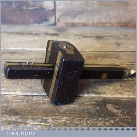Vintage Marples carpenter’s rosewood and brass mortise gauge with screw adjustment, smooth action and good pins, in good used condition.