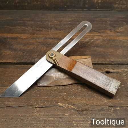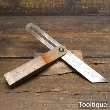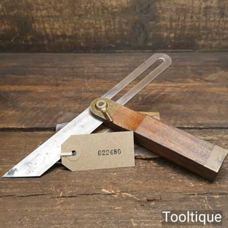Vintage Marples mahogany and brass quick release sliding bevel with 9” blade, in good used condition ready for use.