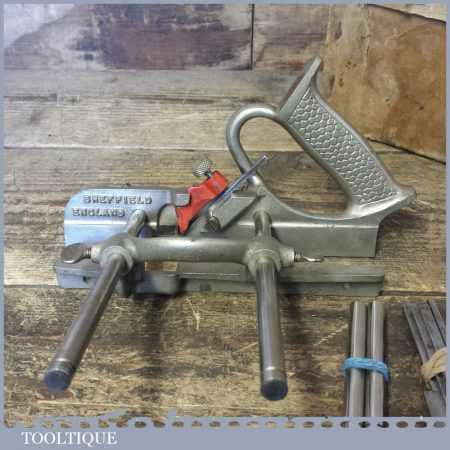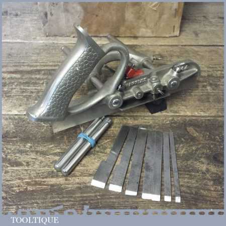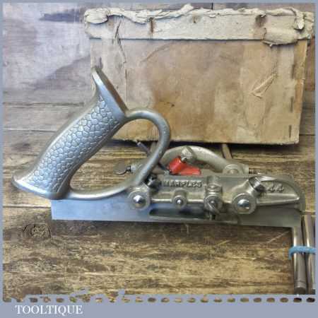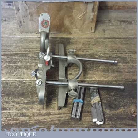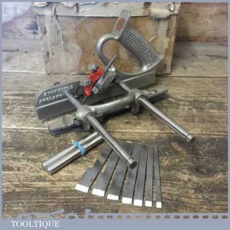 Vintage Marples No: 44 plough plane complete with 8 cutters, fully refurbished and ready for use. The plane is in good condition and all components move smoothly. Note: We do not sharpen the irons.