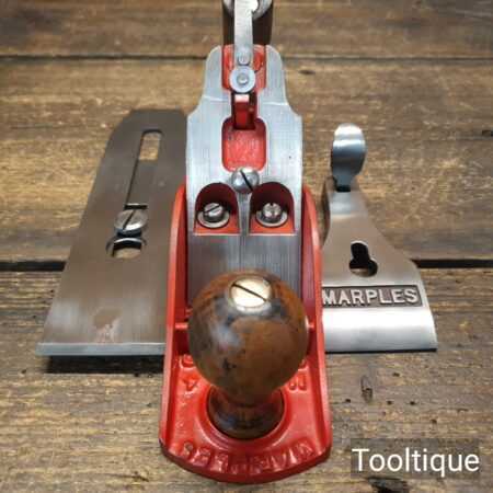 When refurbishing planes, we do not merely clean them to make them look good, they are restored to a level that ensures they are actually ‘in plane to 0.025mm’ sharpened, honed and all the components are thoroughly cleaned so that they move freely. Our planes are specifically reconditioned to satisfy professional tradesmen who will instantly know the difference between buying one of our planes over general other used ones.