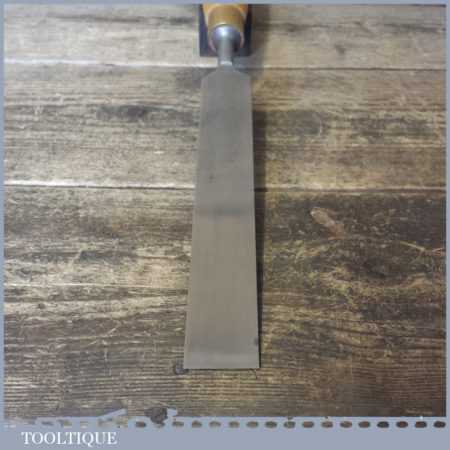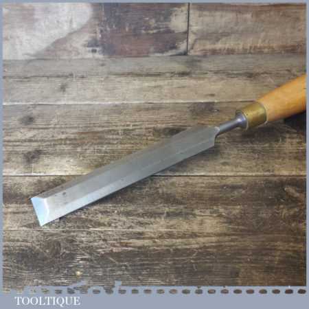 The chisel has been checked to ensure the tang is seated properly and the handle is solid and fit for use. All refurbished chisels are water cooled during the sharpening process to ensure the tempering is not affected. These old cast steel chisels are hand forged and far superior in quality because of the high carbon steel that was used which produces a keener edge, this was also generally used throughout the full length.