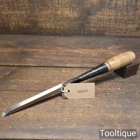 The chisel has been checked to ensure the tang is seated properly and the handle is solid and fit for use. All refurbished chisels are water cooled during the sharpening process to ensure the tempering is not affected.
