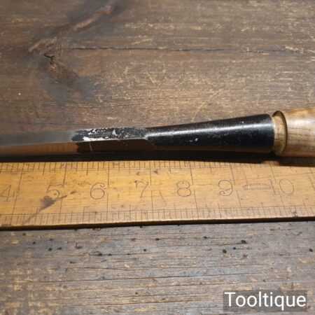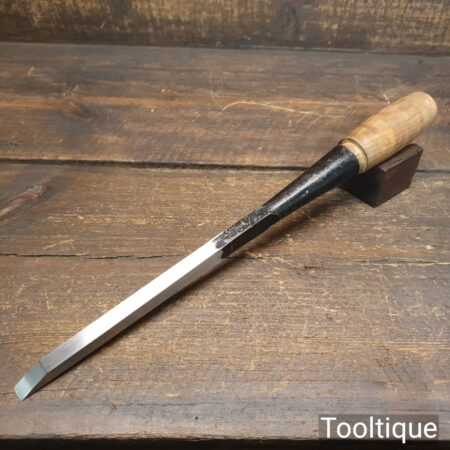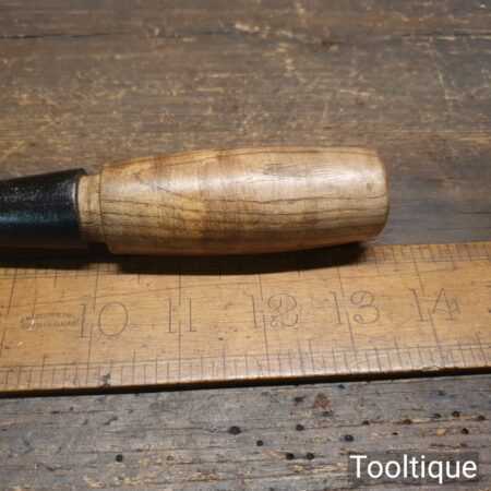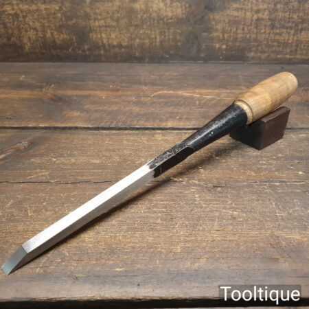 Vintage Marple’s shamrock 3/8” socketed cast steel mortice chisel with ash handle in good used condition, fully refurbished sharpened and honed ready for use. Note this has a good fitting handle that tightens as it used.