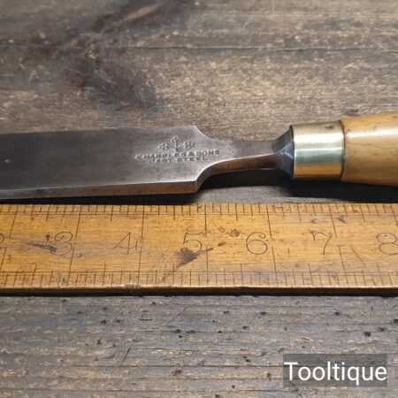 Vintage Marples & Sons 1 ½” Firmer Chisel fully refurbished ready for use and in good used condition. Note: Natural fine age crack resin filled. All refurbished chisels are water cooled during the sharpening & Flattening process to ensure the tempering is not affected.