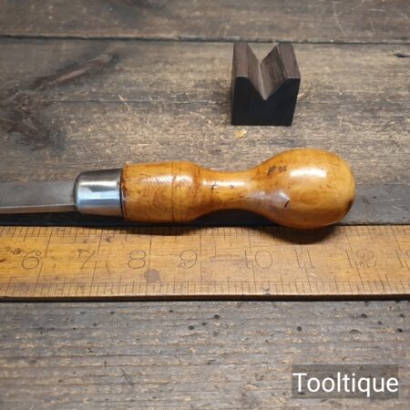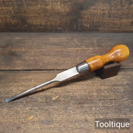 Vintage Marples & Sons 12” Cabinetmakers Screwdriver with a ¼” flat end and boxwood handle, refurbished ready for use and in good used condition. Note: Redressed to a crisp edge.