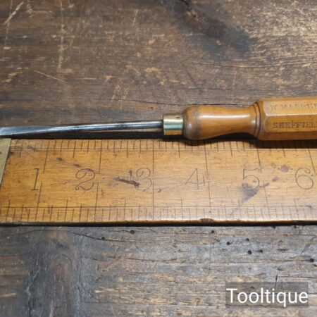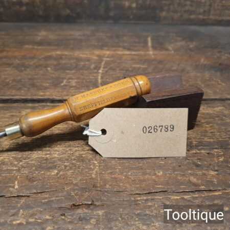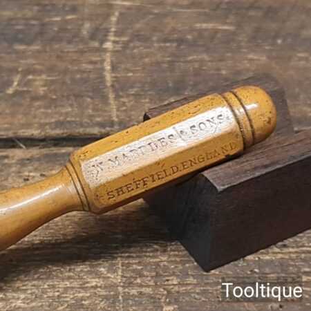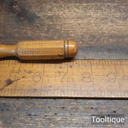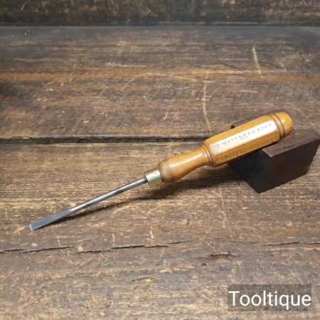 Vintage Marples & Sons 7 ½” long slimline screwdriver with London pattern boxwood handle and approx a ⁵⁄₃₂” flat end, in good used condition. The screwdriver head has been redressed in the same way as it was produced whilst keeping it cool as not to affect the temper.