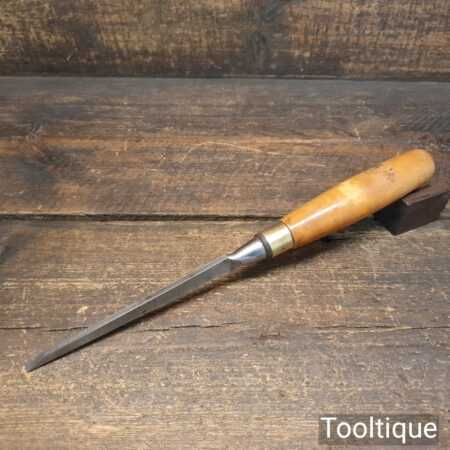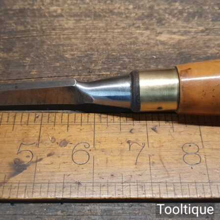 Vintage Marples & Sons carpenter’s ³⁄₁₆” sash mortice chisel with boxwood handle in good used condition, fully refurbished sharpened and honed ready for use.