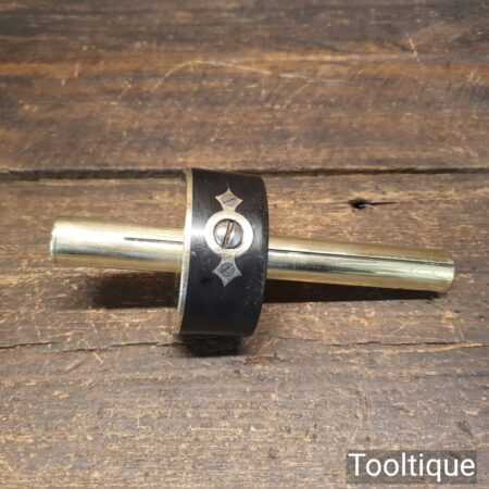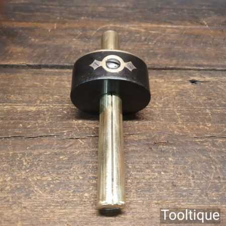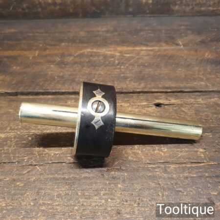 Vintage Marples & Sons Ebony & Brass stem mortice gauge with adjustable screw in the end and in good used condition. Note: This has the internal brass anti-rotation guide.
