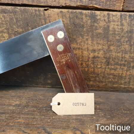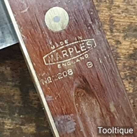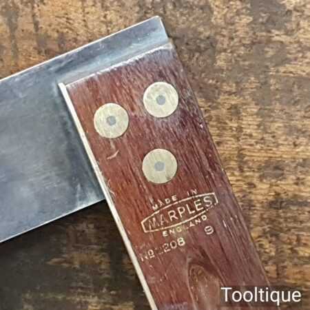 Vintage Marples & Sons No: 2208 carpenters 9” rosewood and brass try square in good used condition. Note: Tested for square, minor small patch of pitting, see images.