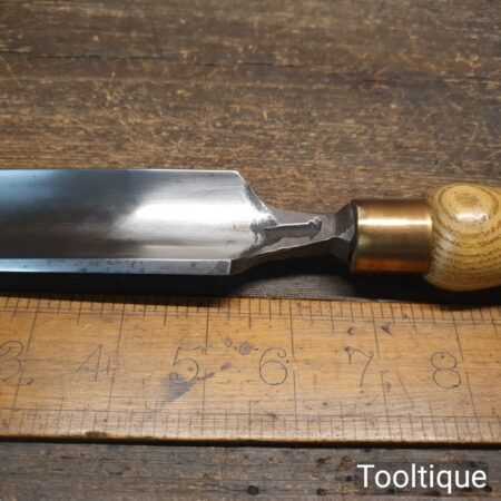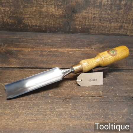 The chisel has been checked to ensure the tang is seated properly and the handle is solid and fit for use. All refurbished chisels are water-cooled during the sharpening process to ensure the tempering is not affected.
