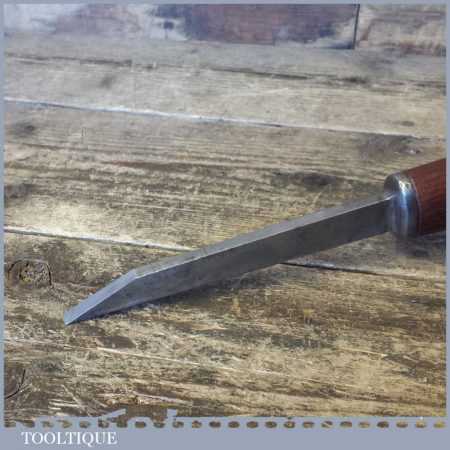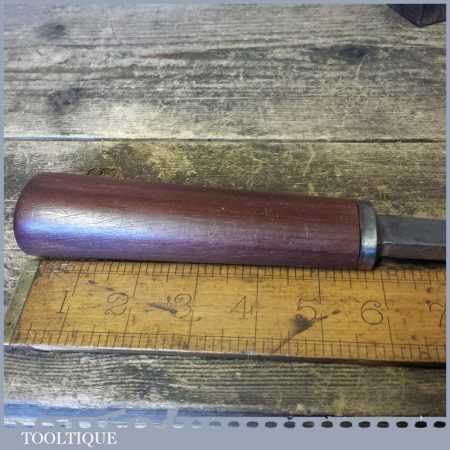 The chisel has been checked to ensure the tang is seated properly and the handle is solid and fit for use. All refurbished chisels are water cooled during the sharpening process to ensure the tempering is not affected. These old cast steel chisels are hand forged and far superior in quality because of the high carbon steel that was used which produces a keener edge, this was also generally used throughout the full length.