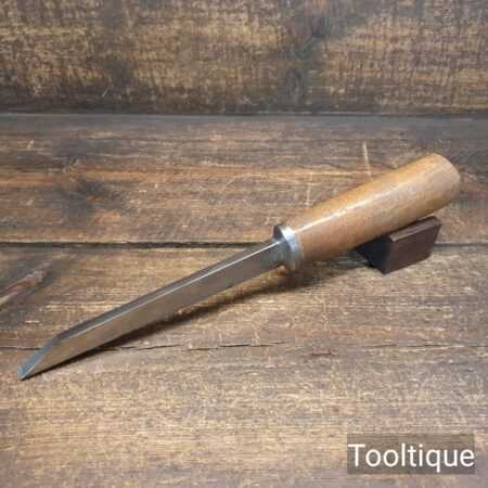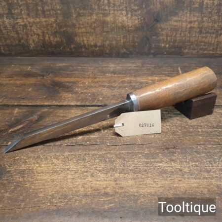 The chisel has been checked to ensure the tang is seated properly and the handle is solid and fit for use. All refurbished chisels are water cooled during the sharpening & flattening process to ensure the tempering is not affected.