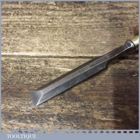 Vintage Mawhood Bros carpenter’s 1/2” bevel edge palm chisel with beechwood handle in good used condition, fully refurbished sharpened and honed ready for use.