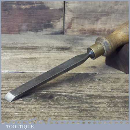 The chisel has been checked to ensure the tang is seated properly and the handle is solid and fit for use. All refurbished chisels are water cooled during the sharpening process to ensure the tempering is not affected. These old cast steel chisels are hand forged and far superior in quality because of the high carbon steel that was used which produces a keener edge, this was also generally used throughout the full length.