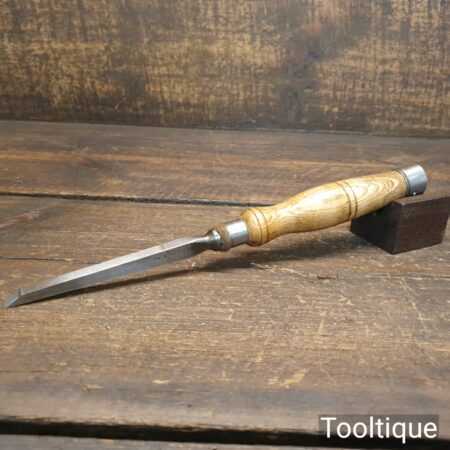 The chisel has been checked to ensure the tang is seated properly and the handle is solid and fit for use. All refurbished chisels are water cooled during the flattening & sharpening process to ensure the tempering is not affected.