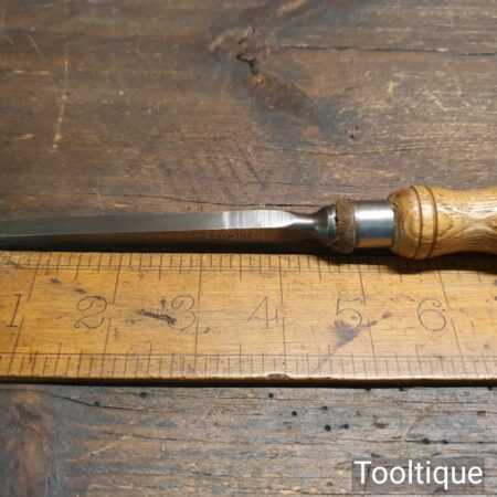 Vintage Mawhood Bros (Palm Tree brand) carpenter’s 1/4” heavy duty firmer chisel with reinforced ash handle in good used condition, fully refurbished sharpened and honed ready for use.