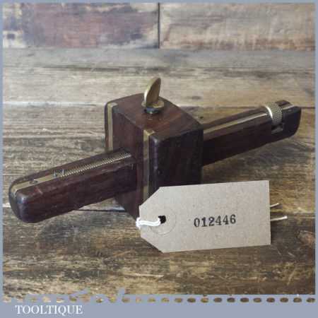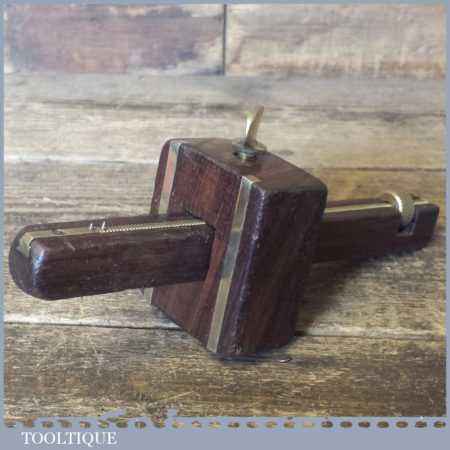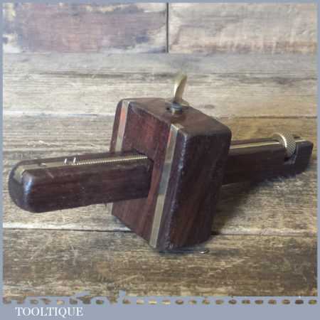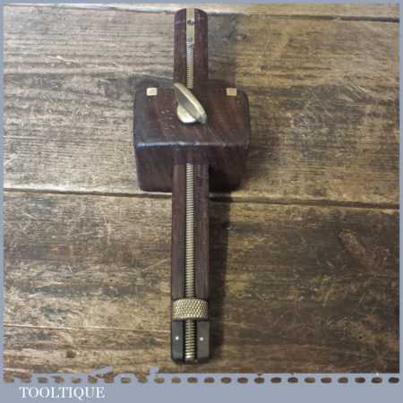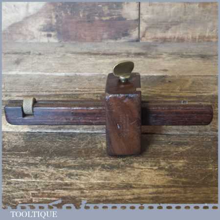 Vintage Mawhood Bros rosewood and brass mortise gauge with unusual full-length screw adjuster, smooth action and good pins and in good used condition.