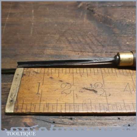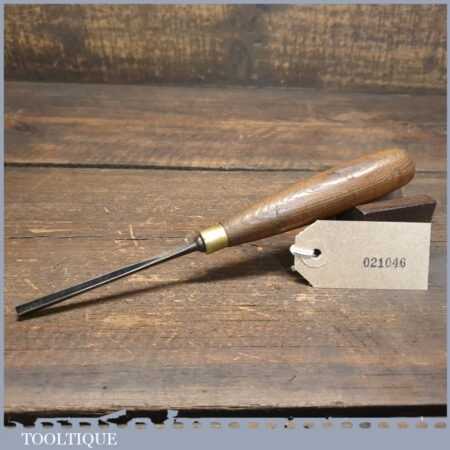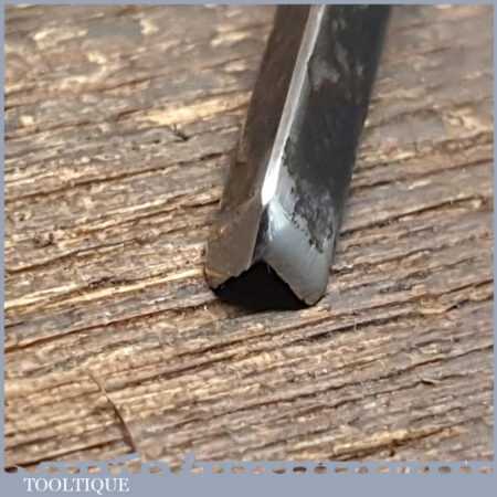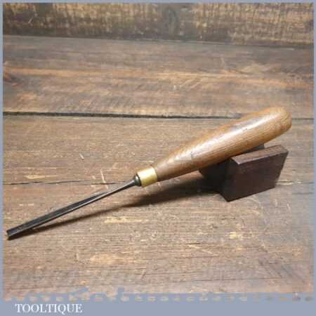 Vintage M&B 3/16” straight woodcarving “V” parting chisel with ash handle in good used condition, fully refurbished sharpened and honed ready for use.