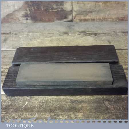 Vintage medium grit oil stone in a mahogany box in good used condition.