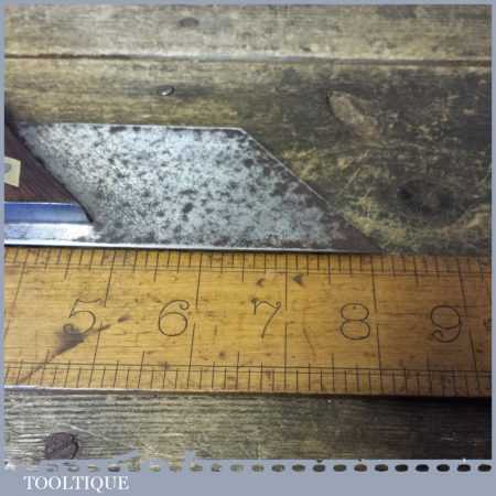 Vintage Melhuish 8” carpenter’s mahogany and brass mitre hook square in good used condition.