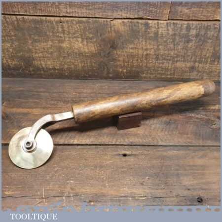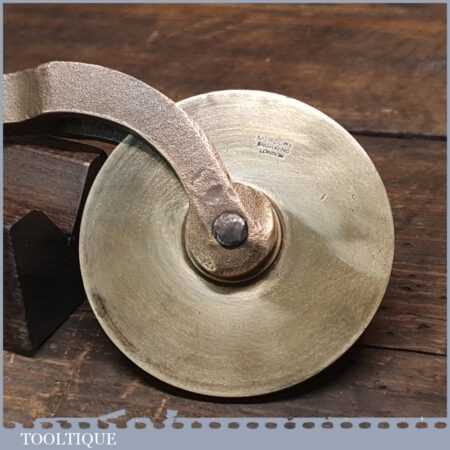 Vintage Mercury Engraving, London wooden handled brass bookbinding wheel in good used condition. (Mercury Engraving) was established at City Road, Islington in 1965 and specialised in dies and tools for the foil printing and embossing trades. Sadly, the company closed in 2017