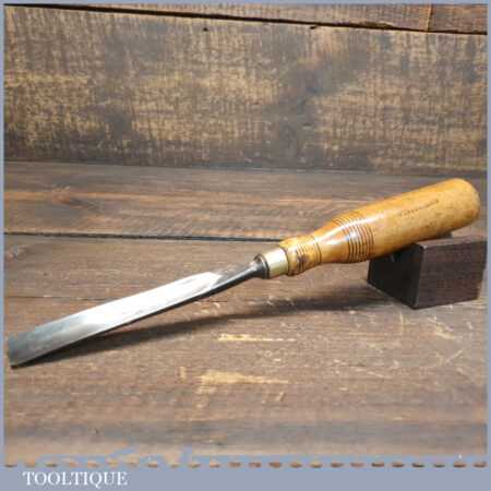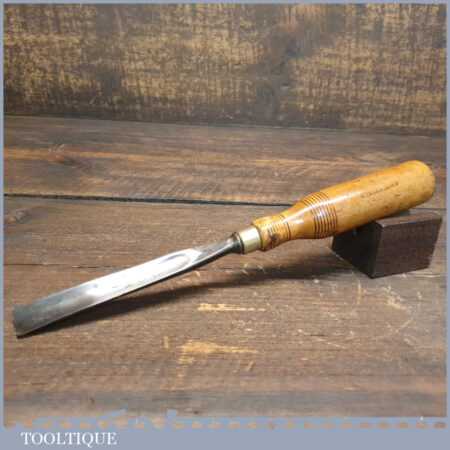 Vintage Mifer 5/8” straight woodcarving gouge chisel with beechwood handle in good used condition, fully refurbished sharpened and honed ready for use.