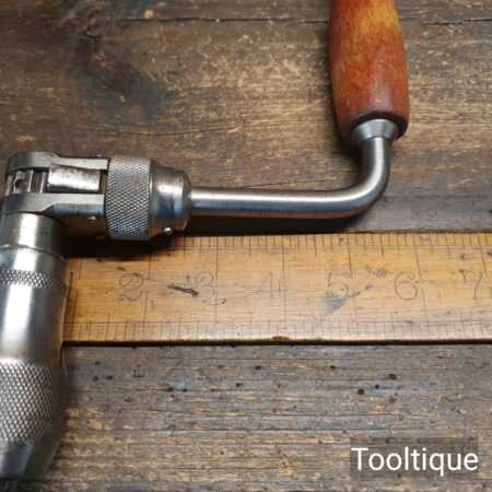 Vintage Millers Falls Co No: 2010 beechwood ratchet brace with a 12″ swing in good used condition.