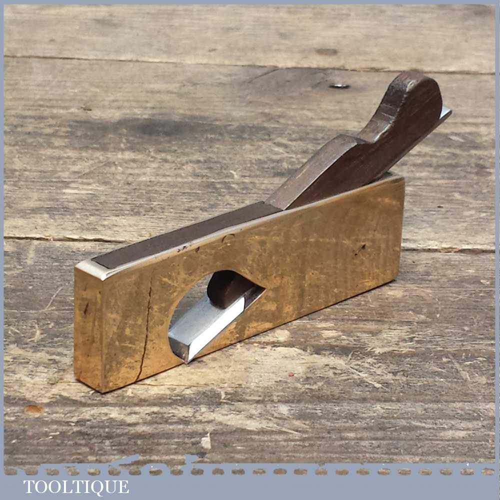 Vintage Miniature 3 ¾” brass & rosewood infill shoulder plane which measures approx 3/8” wide and is in good used condition. It is certainly a stylish and perfectly useable
