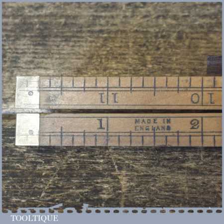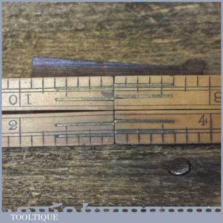 Vintage miniature Hockley Abbey No: 1150 boxwood & brass 4-fold 12” ruler in good used condition.