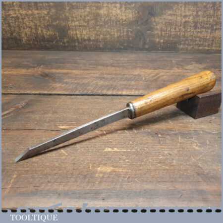 Vintage Mitchell carpenter’s 3/16” cast steel mortice chisel with ash handle in good used condition, fully refurbished sharpened and honed ready for use.