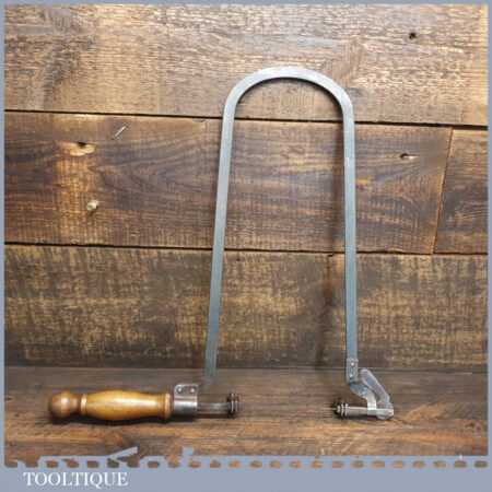 Vintage model maker’s lever tightening fretsaw with beechwood handle, in good used condition. Completely different to the types seen today with much more rigid steel.